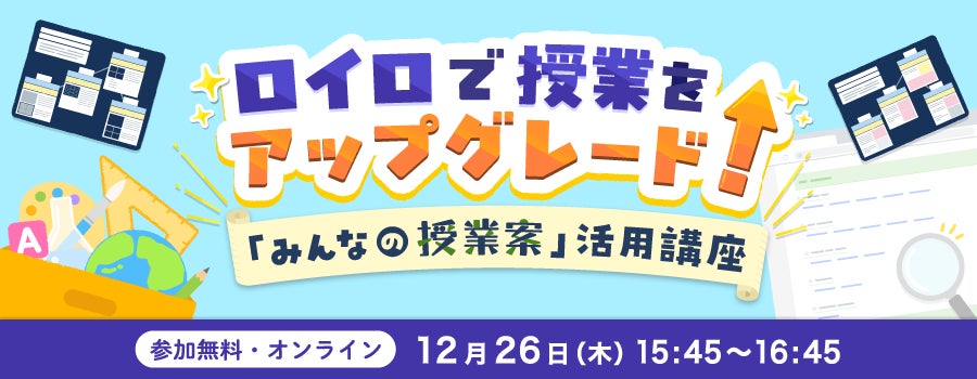 より効果的に「みんなの授業案」を活用したい先生には、12月26日(木)に開催されるオンライン講座への参加がおすすめです。